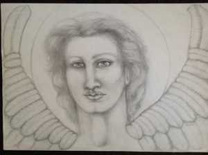 My daughter Nat had felt strongly guided by Gabriel, assisting her with projects she is currently undertaking.Nat asked me if I could meditate on Gabriel for her to see if I could get a vision and draw a picture for her.I was deep in meditation and saw a face that zoomed in on the most beautiful eye that I had ever seen, it shone brilliantly of blues, greens and purples. I was so amazed at the time that I woke and became conscious, then relaxed back into meditation in the hope of reclaiming that same vision…however this time I was led to, how spirit wanted me to draw Gabriel.I have only just started drawing again and am quite a novice at it, and I hope that I have given some justice to how beautiful and amazing our Archangel Gabriel is.
